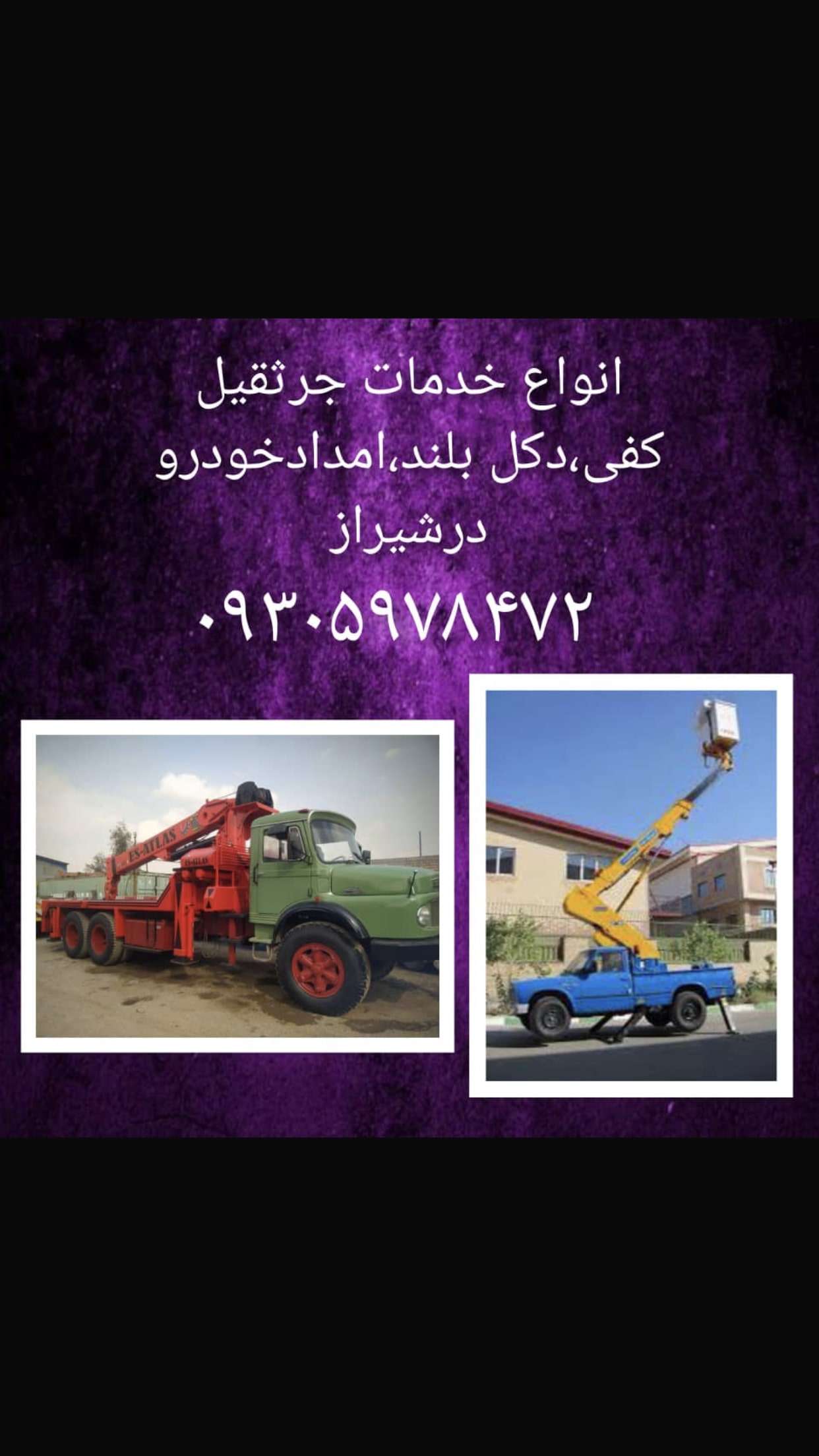 خدمات جرثقیل کفی دکل بلند و‌نیسان بالابر شیراز و استان فارس